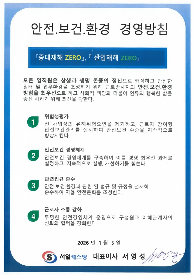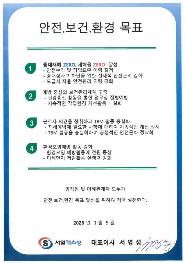 2026년도 안전보건환경 목표 및 경영방침